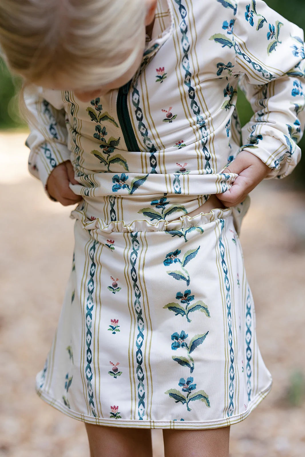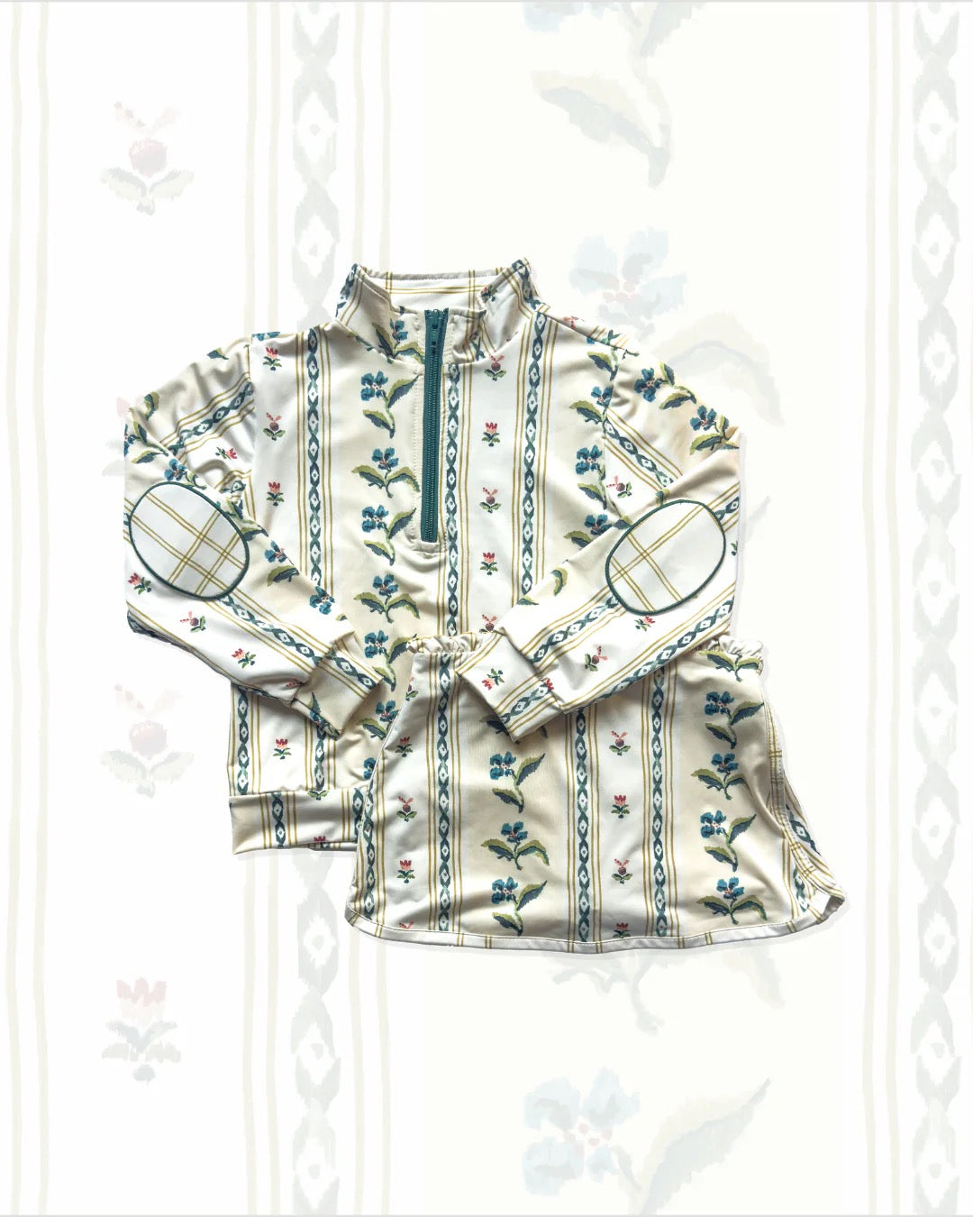 • elbow patch, zipper placket, cuff, biker short, edging in coordinating print